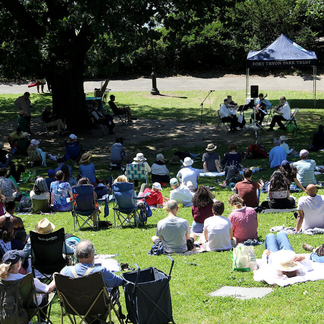 The Scandinavian Music Festival in Fort Tryon Park, now in its 15th season, is a unique series of three outdoor summer concerts performed by musicians of the Scandia Symphony and guest artists on Sundays in June. The concerts take place in a scenic and attractive venue, on Billings Lawn, below the Heather Garden and with spectacular views of the Hudson River. The artists speak to the audience as they introduce musical characteristics and history of the music and the culture and traditions of Scandinavia.